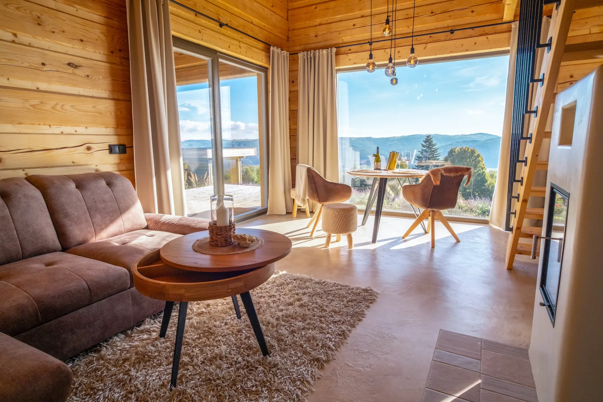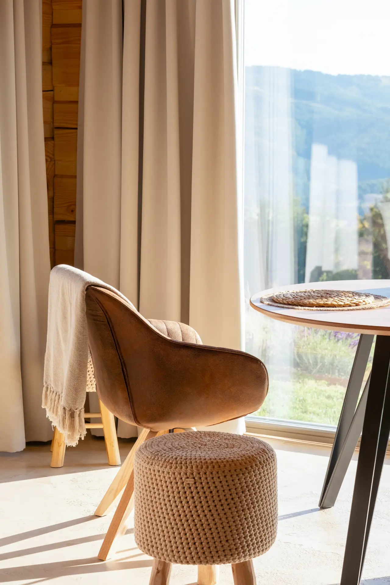 Slunce se pomalu protahuje nad lesem, nakukuje vám prosklenou stěnou až k jídelnímu stolu. Na něm voní káva a dvě židle čekají, až se usadíte a budete se kochat výhledem na hory. Jačmenka je