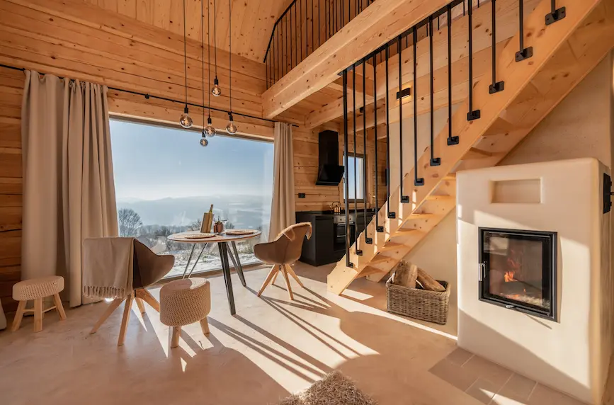 apartmán pro dva na Žítkové. Uvnitř je krb, patro na spaní a otevřený prostor pro snídani, čtení i lenošení. Výhodou Jačmenky je, že z něj můžete pohodně do