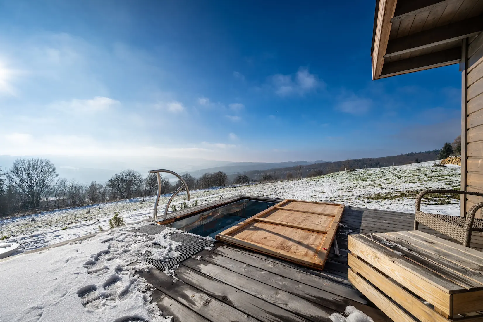 Horká káď patří pouze k apartmánu Jačmenka. Sauna je přístupná z obou.