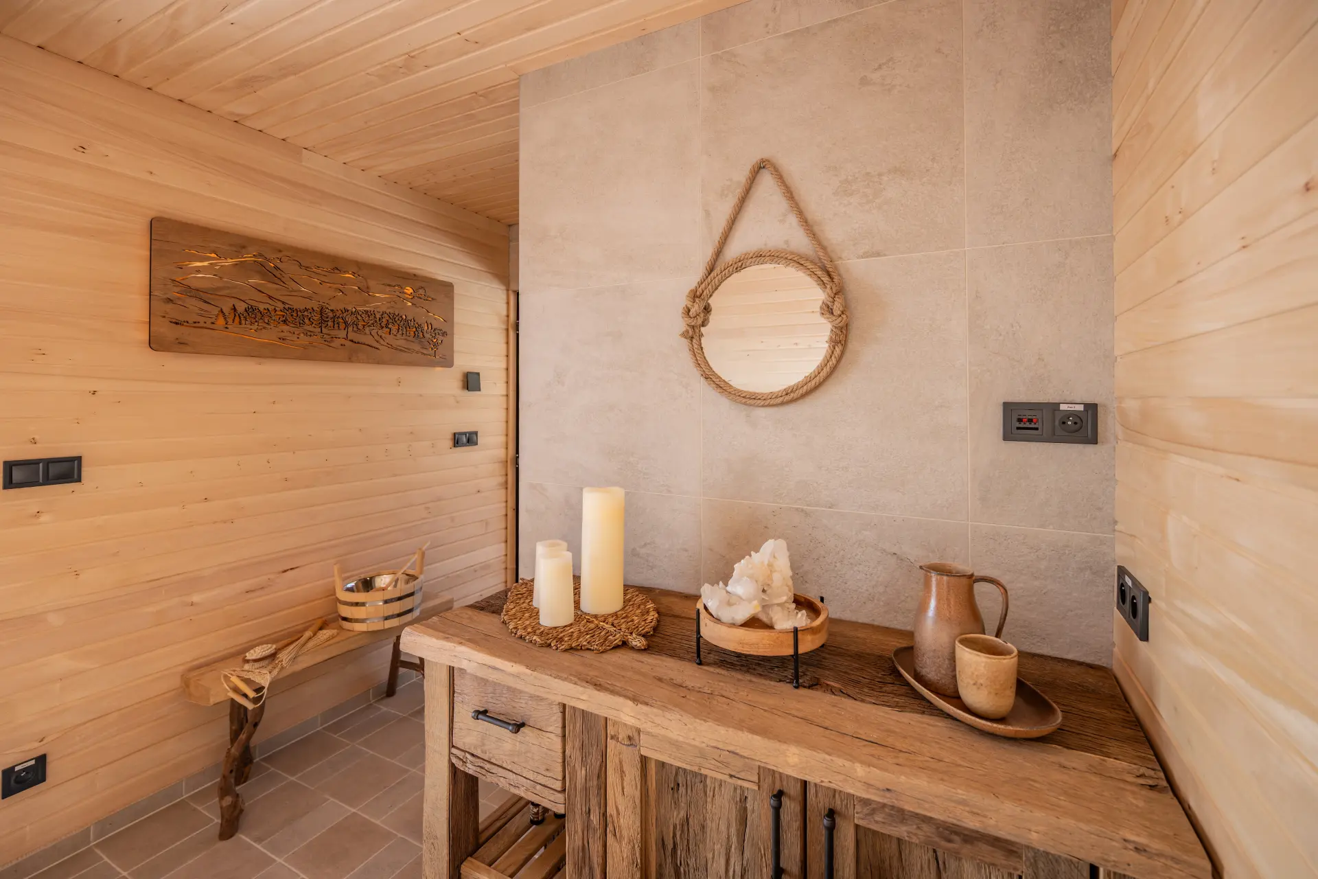 Sauna je k dispozici pro oba apartmány! Je privátní, a tak v ní budete vždy jenom a pouze Vy…